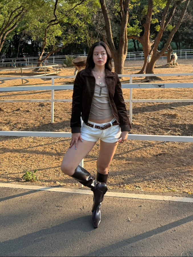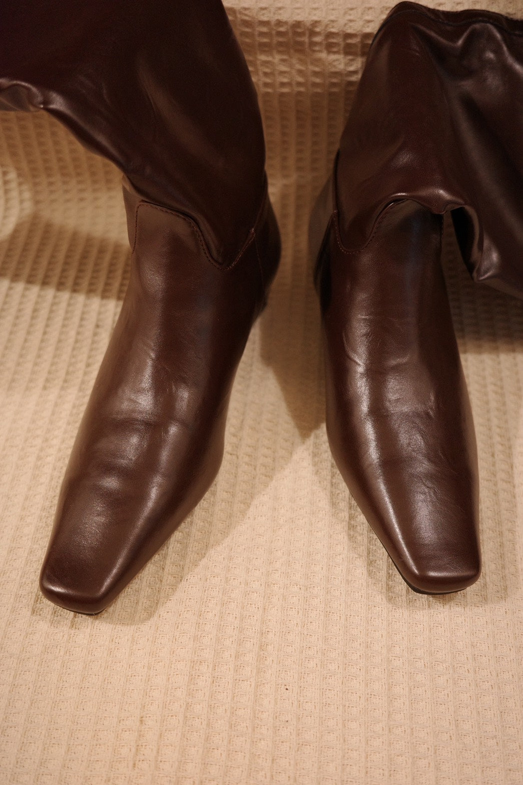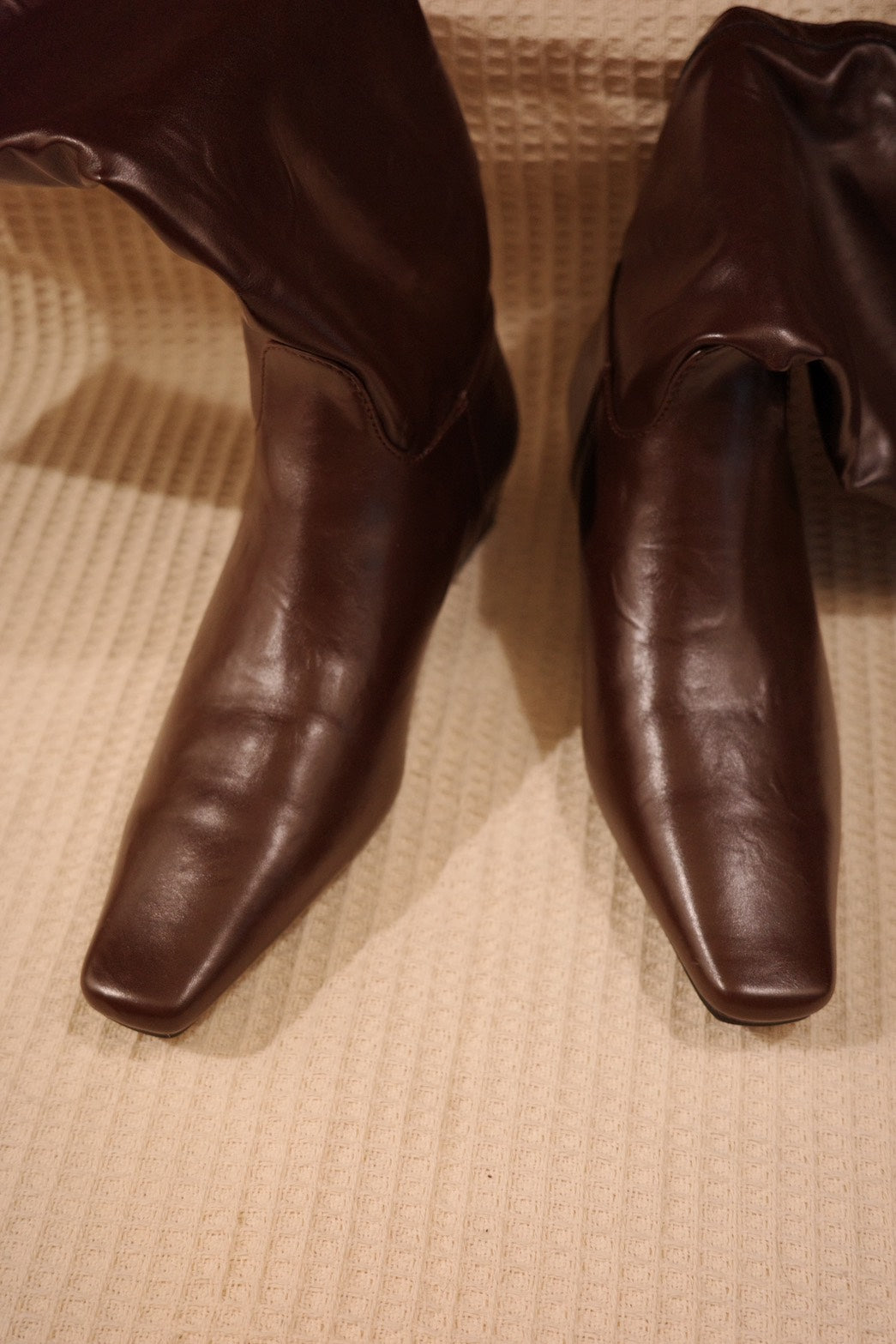 再來這款咖色靴!!闆娘這次特別帶來這種簡約全素的感覺 真的很好搭!!方頭的設計是闆娘第一次帶來!這款就適合習慣穿平底的水水!!! 是最實穿的靴!! 整體是霧面軟皮革 筒身有點堆堆感可以往下推!