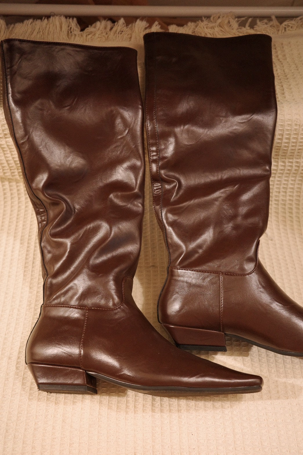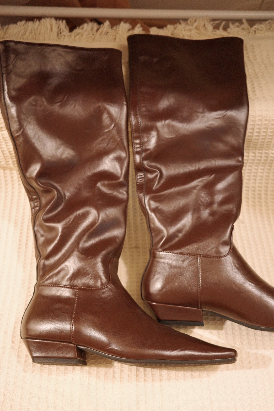 秋冬質感平底咖色直筒皮靴🤎🐎