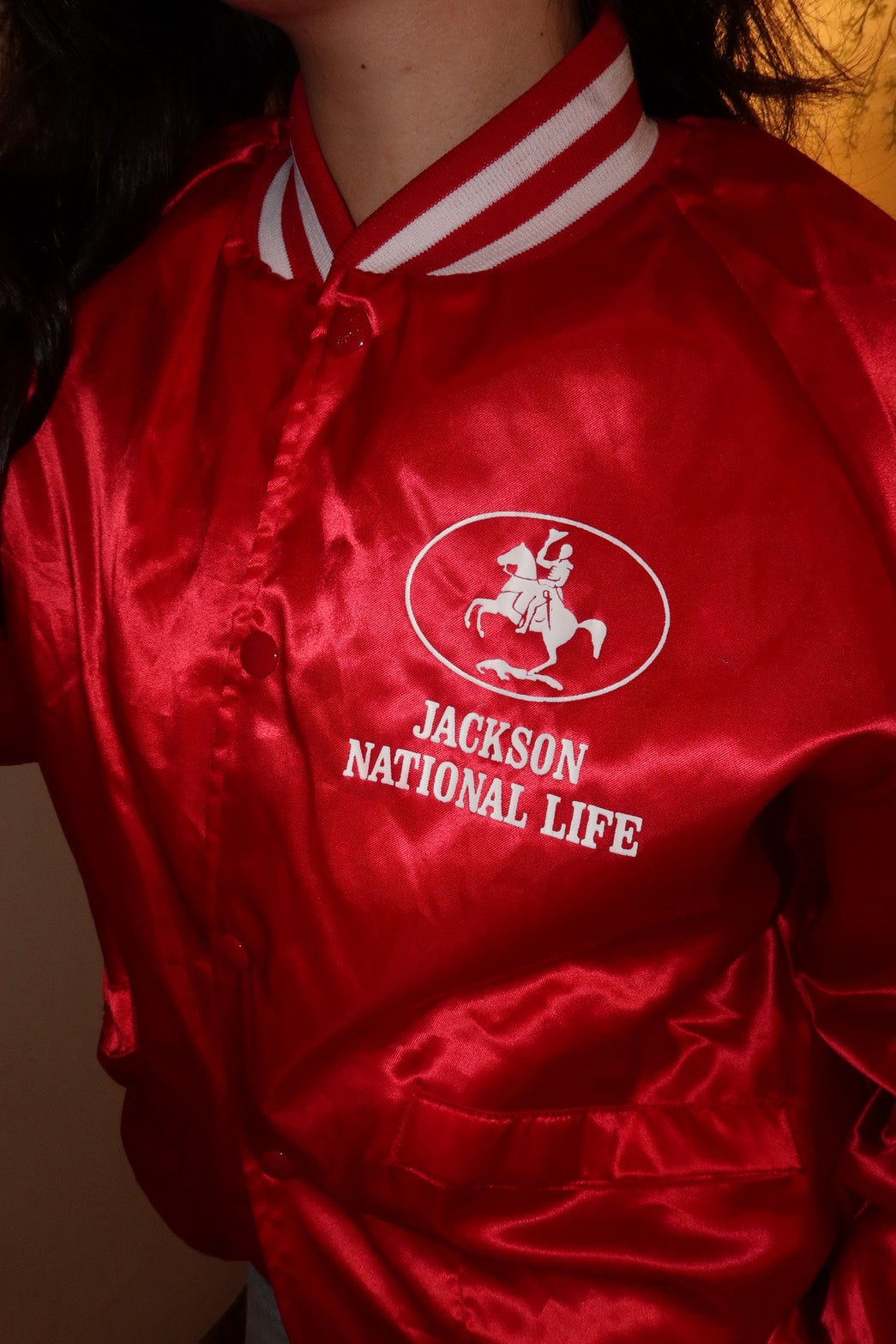 鮮紅色底+印刷「Jackson National Life」,是企業團體服老件,稀有度不輸校隊款。顏色很搶眼,穿上直接成為畫面中心。