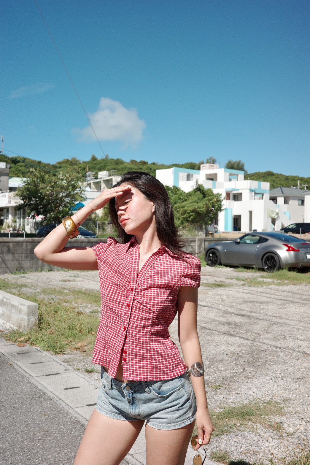 本期大必買🍓⭐️美式復古格紋辣妹短袖襯衫🕹️
