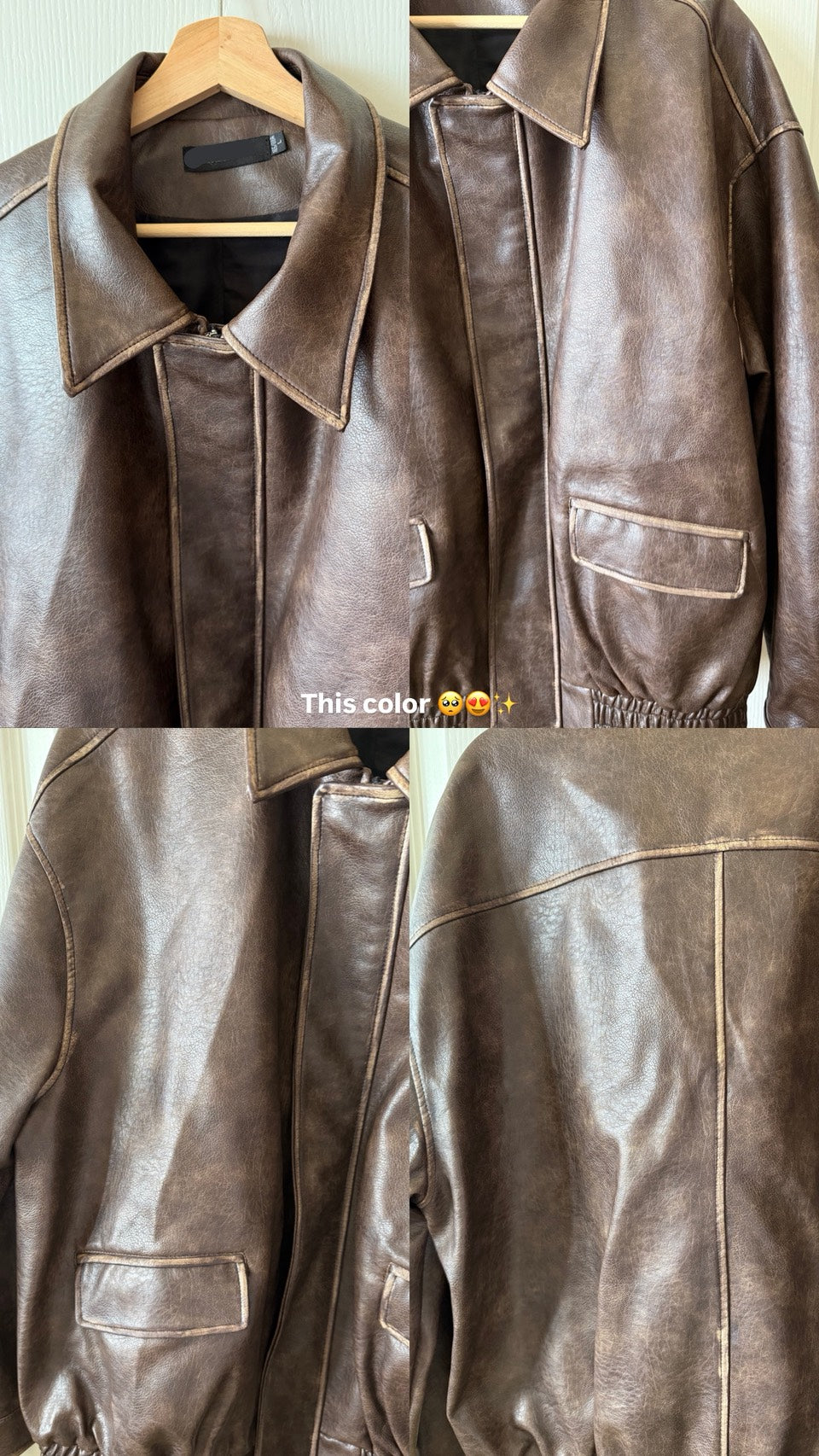 - 💗這款真的是闆娘開賣場以來選到一款最最最到位!!!最有老皮衣外套感覺的一款!!!完全就是最hailey vibe的皮外!!!!!!!!!!!!!大愛特愛!!!!
