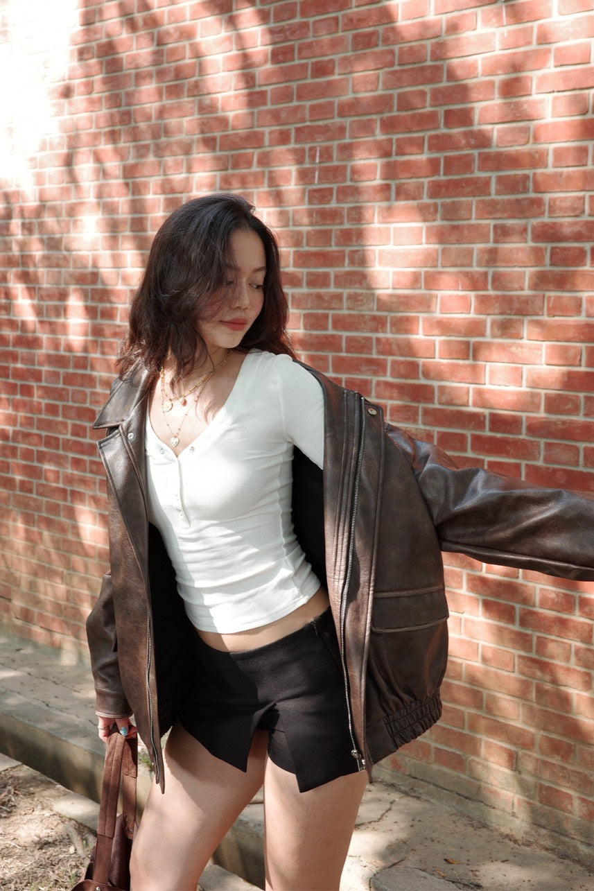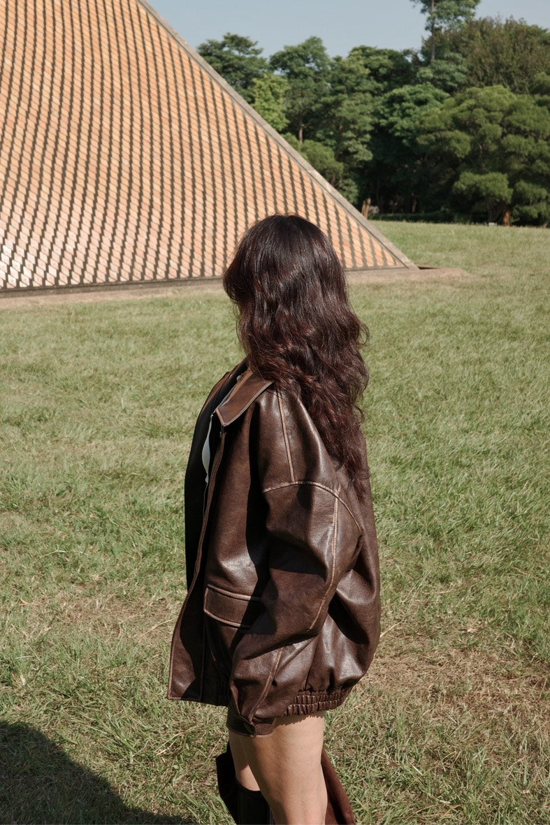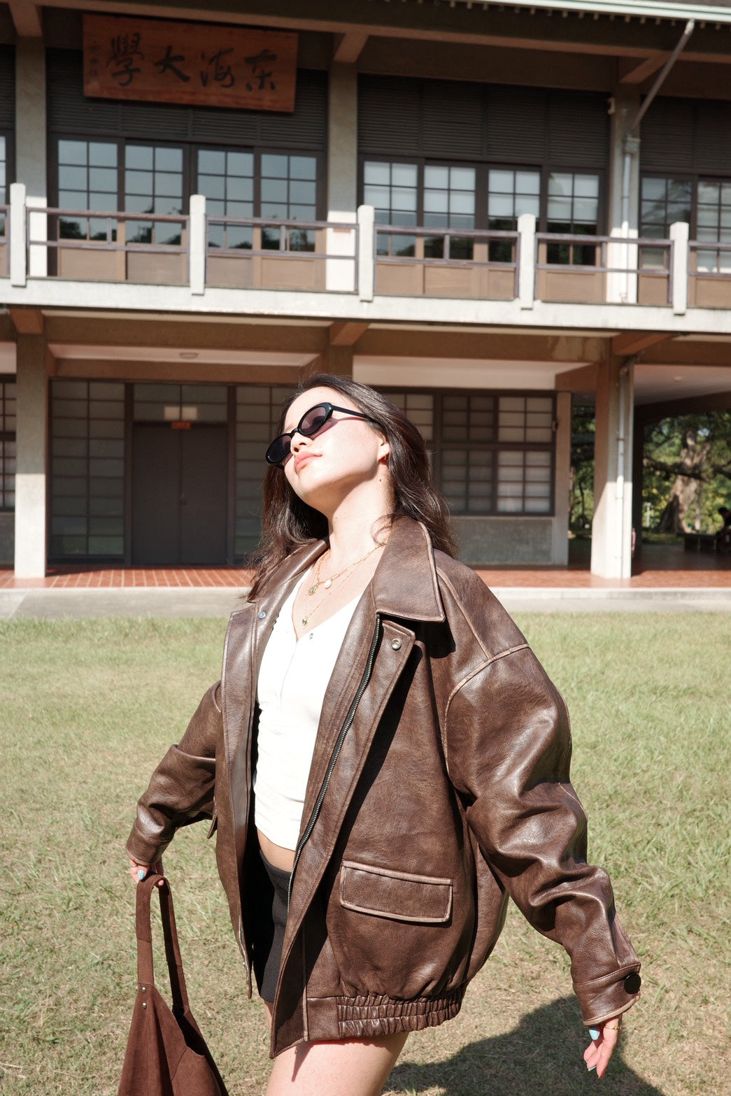🔥超級大必買!!🤎Hailey Vibe寬鬆做舊咖色皮衣外套🍂📻
